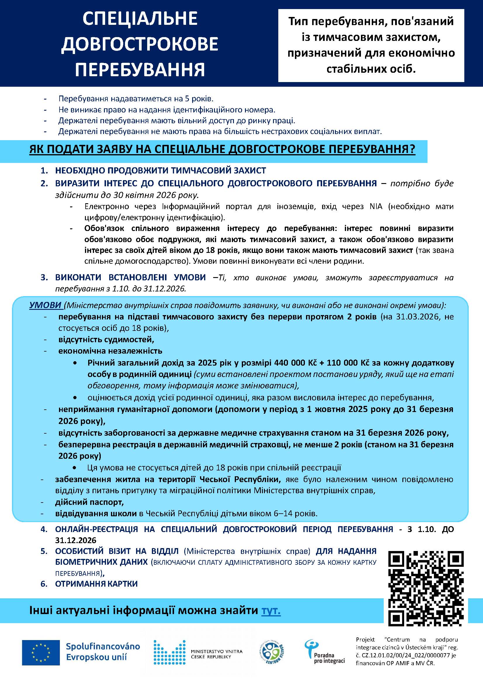 - pobyt na základě dočasné ochrany nepřetržitě po dobu 2 let(k 31.3.2026, nevztahuje se na osoby mladší 18 let),